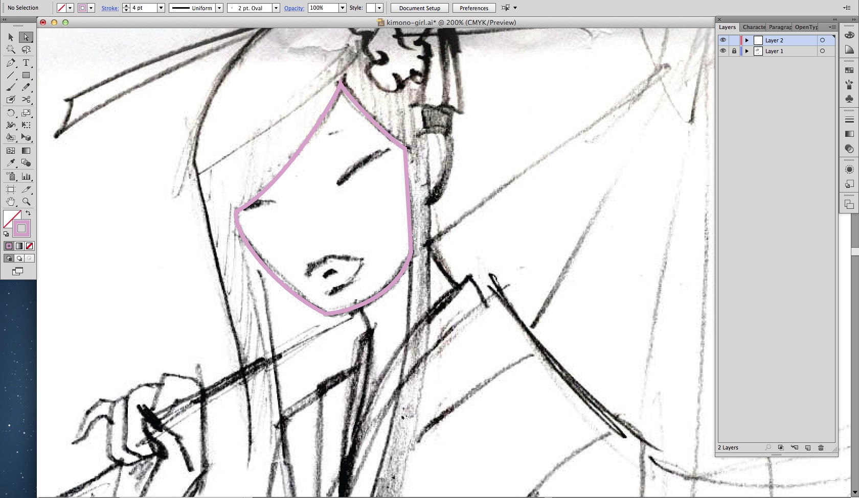 Continue to close all the required paths. Once you’ve completed the main image, unlock the background sketch Object > Unlock and then Select and Cancel it using the Backspace key on your keyboard.