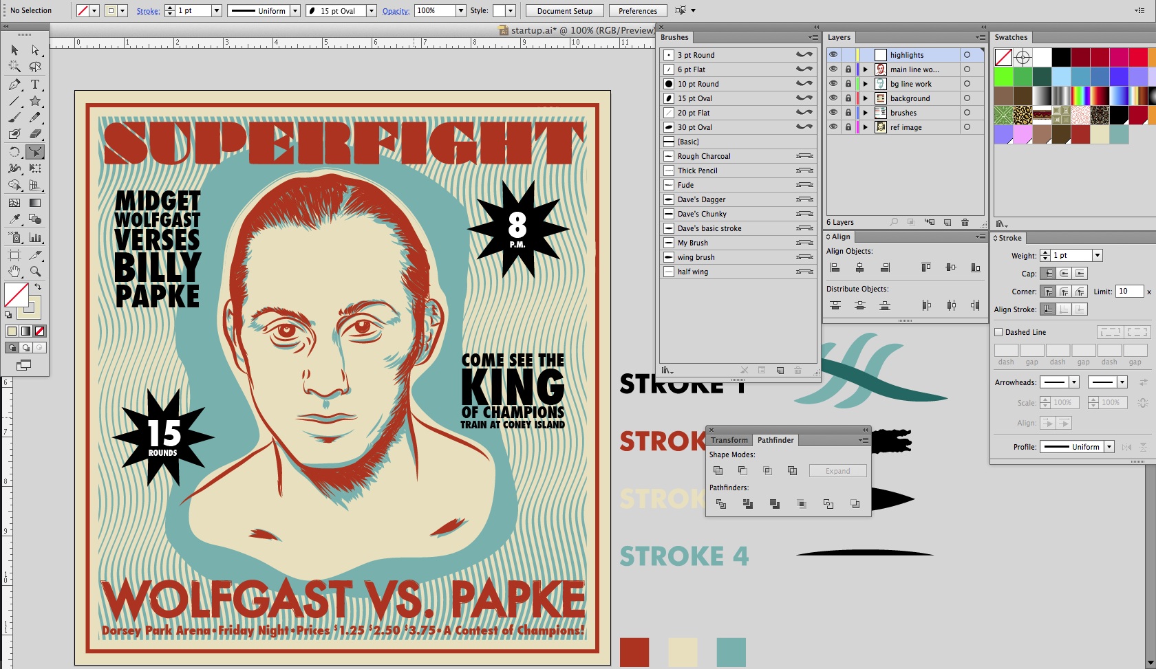 Second, using a vintage portrait, also provided in the download, for reference, you’ll construct a boxing poster that retains that elusive hand-drawn charm.