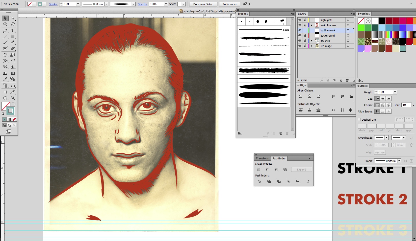 Don’t get me wrong; I like the one-point stroke. I think it works well in technical illustrations, but when used in other arenas it can appear sterile and boring.
